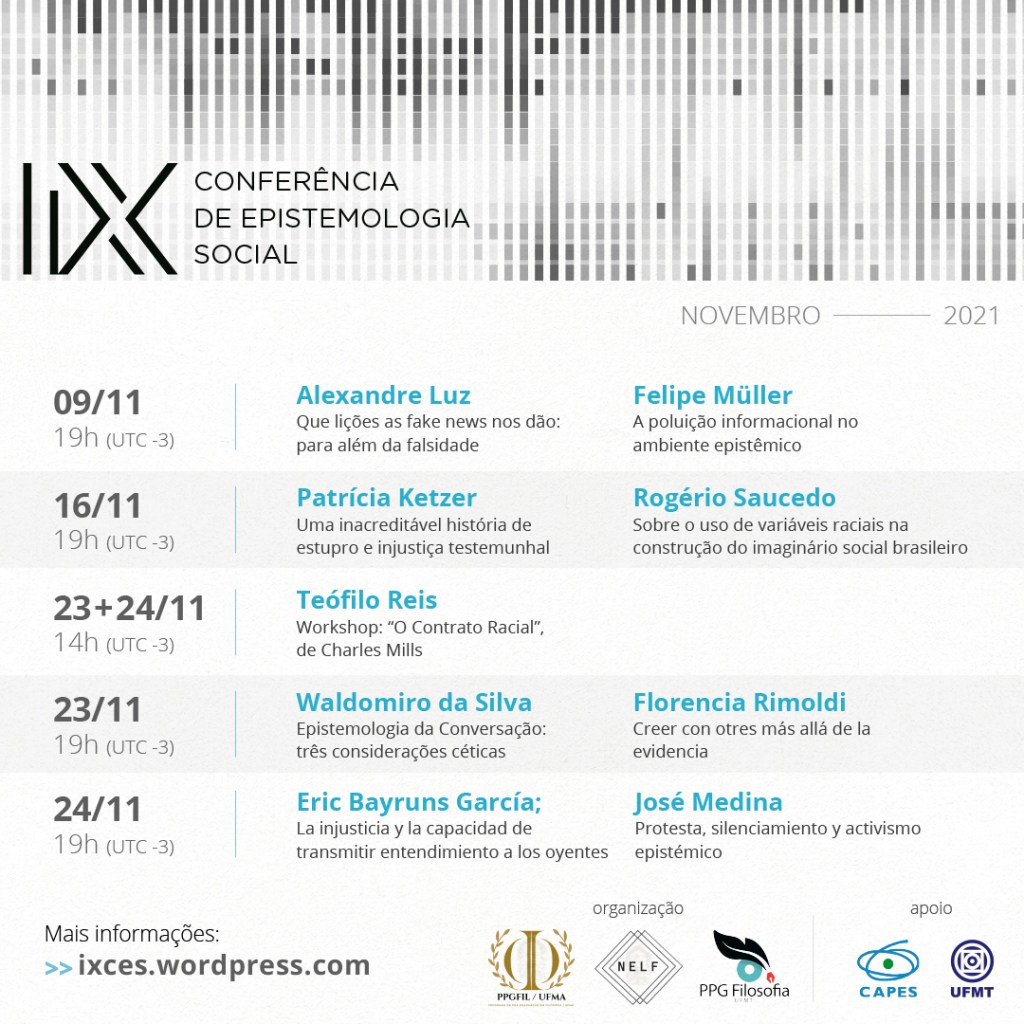 Nosso plano original era realizar o evento presencialmente em Cuiabá, na UFMT, em maio do ano passado, mas a pandemia nos fez suspender os planos e pensar em alternativas. Decidimos, no fim das contas, fazer um evento menor do que o habitual e realizá-lo virtualmente, ainda sob responsabilidade do Programa de Pós-Graduação em Filosofia da UFMT, juntamente com o NELF/PPGFIL-UFMA e com o apoio do Programa de Pós-Graduação em Estudos de Cultura Contemporânea da UFMT e da CAPES.