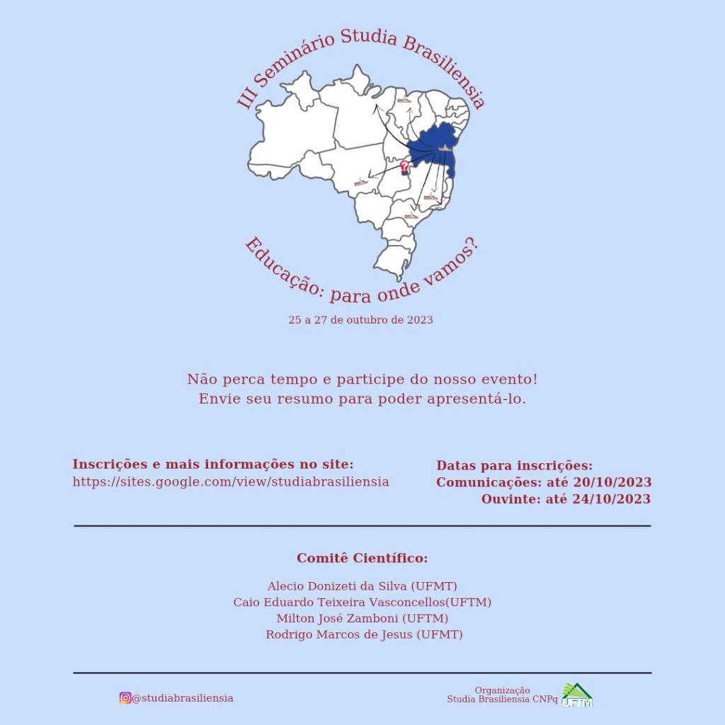 O III Seminário Studia Brasiliensia, tem como tema: Educação brasileira: para onde vamos? Acontecerá entre os dias 25, 26 e 27 de outubro de 2023.