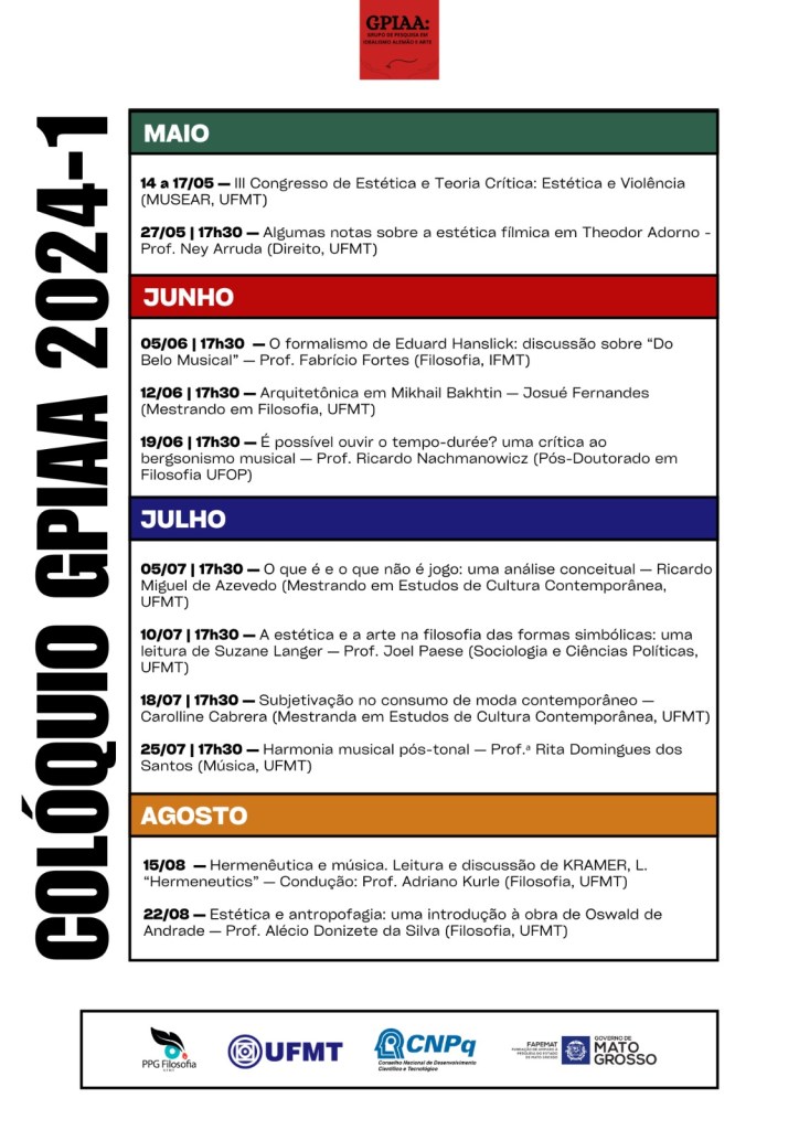 As atividades serão híbridas ou online. Para solicitar acesso aos links, escreva para gpiaa.ufmt@gmail.com