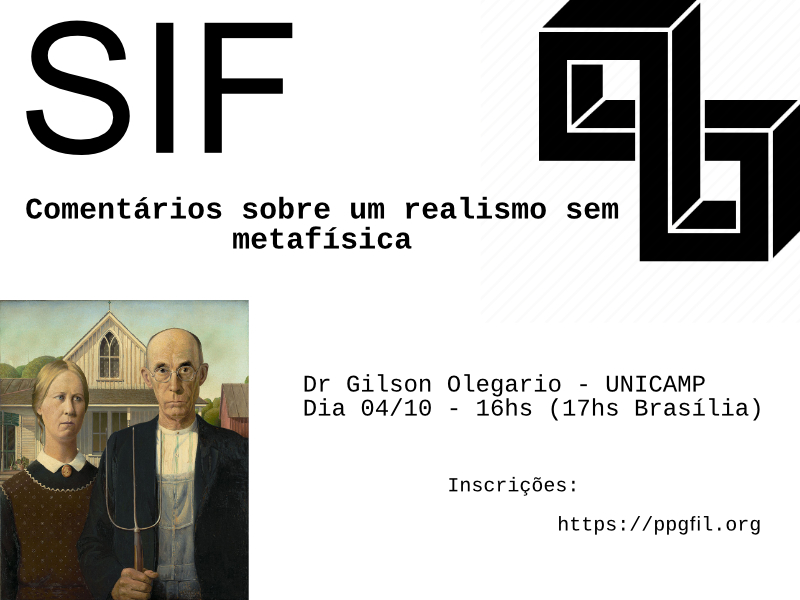 O Programa de Pós-Graduação em Filosofia da UFMT convida a comunidade acadêmica para mais uma edição do Seminário Integrado de Filosofia (SIF) com a palestra “Comentários sobre um realismo sem metafísica”, do Dr. Gilson Olegario (UNICAMP), dia 04/10/2021, segunda-feira às 16hs (17hs Brasília), via Zoom. Os alunos que quiserem participar do debate na sala ZoomContinuar lendo “SIF – Comentários sobre um realismo sem metafísica”
